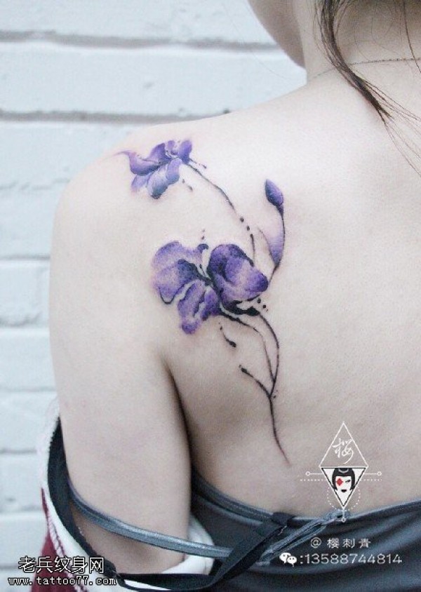 肩部鸢尾花纹身图案