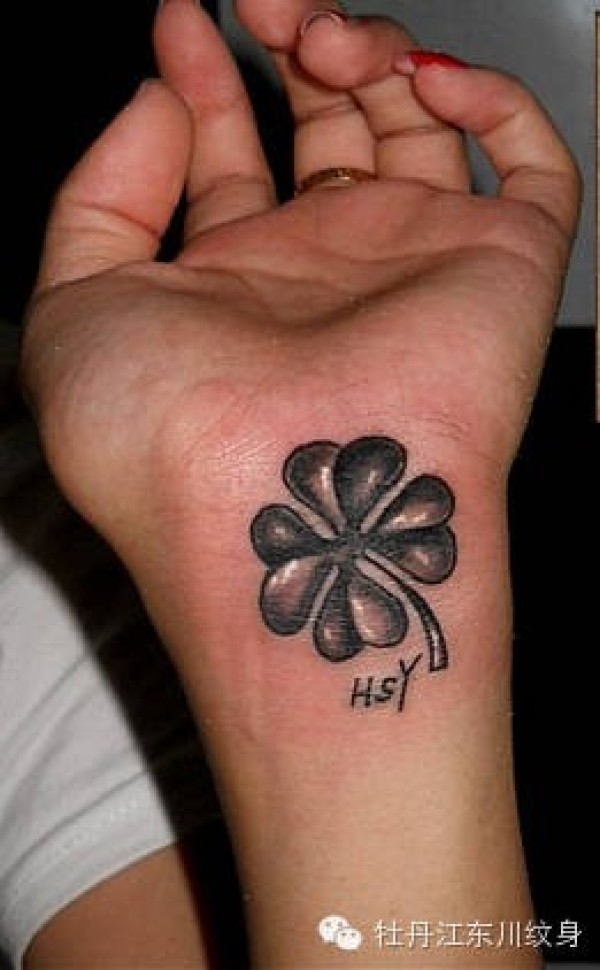 手腕幸运四叶草纹身