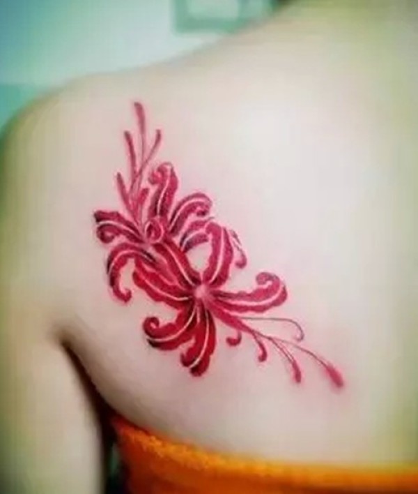 女生肩花纹身_15张女性双肩对称的肩花纹身图案作品图片