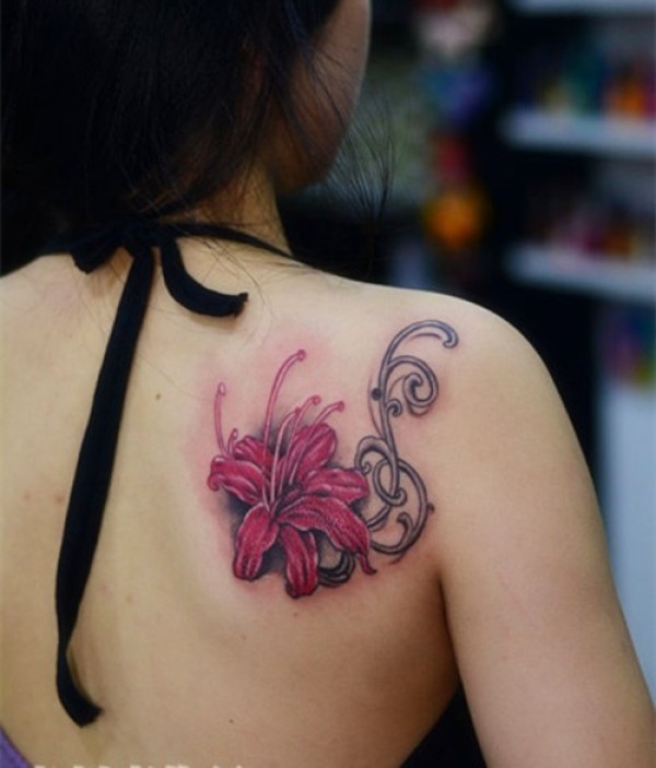 女生肩花纹身_15张女性双肩对称的肩花纹身图案作品图片