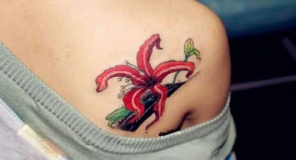 女生肩花纹身_15张女性双肩对称的肩花纹身图案作品图片
