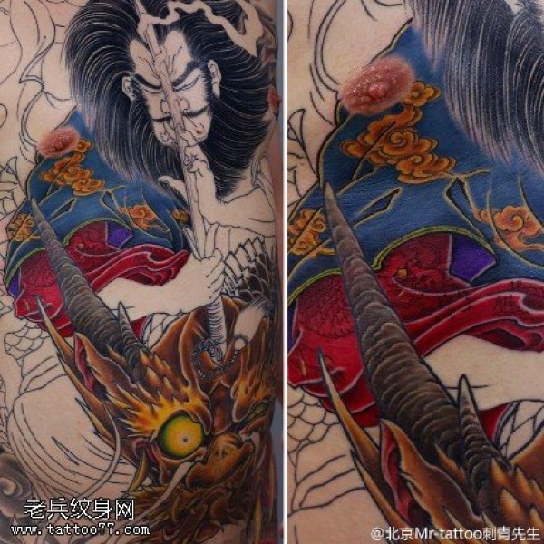 日式手彫刺青作品—半甲龙很感谢客户认可手彫刺青,手彫是日本纹身的手工雕刻技术,时间可以追溯到日本17世纪的江户时代。19世纪,手彫技术被日本黑帮挪用,被用作入会仪式,象征着从此就是江湖中人。在日式传统