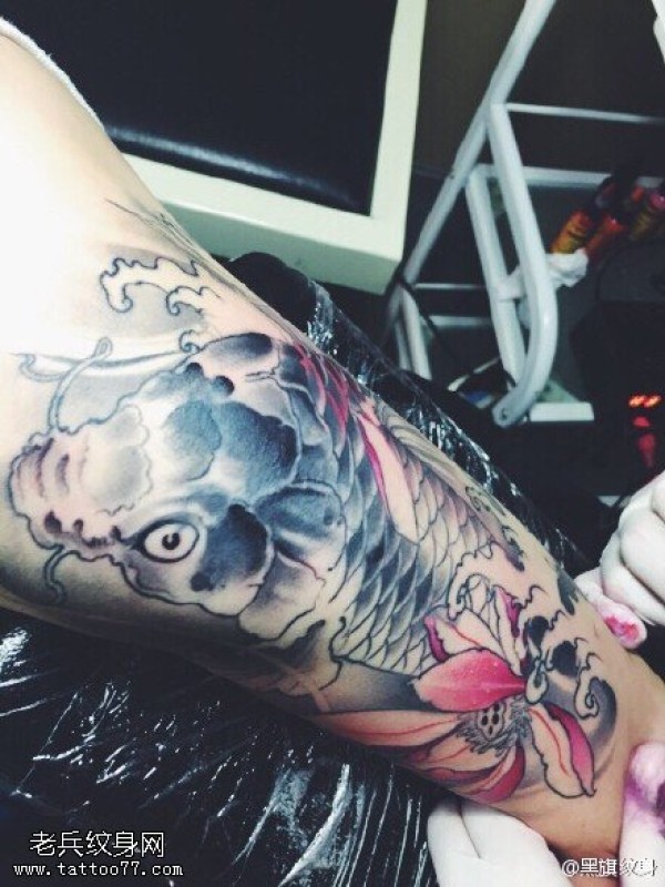 手臂经典锦鲤莲花纹身图案