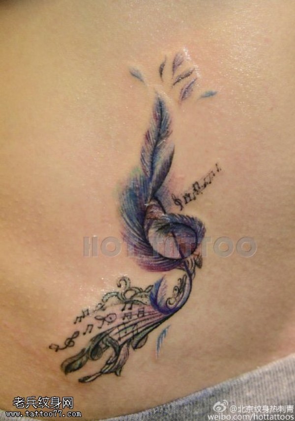 背部美丽的羽毛纹身图案