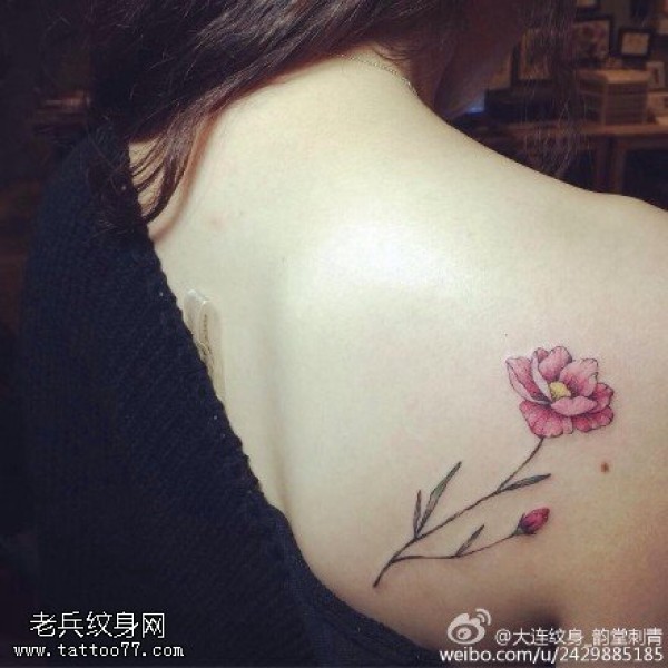 女生肩花纹身_15张女性双肩对称的肩花纹身图案作品图片