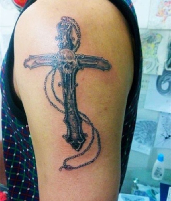 潮流前线 大臂时尚十字架纹身