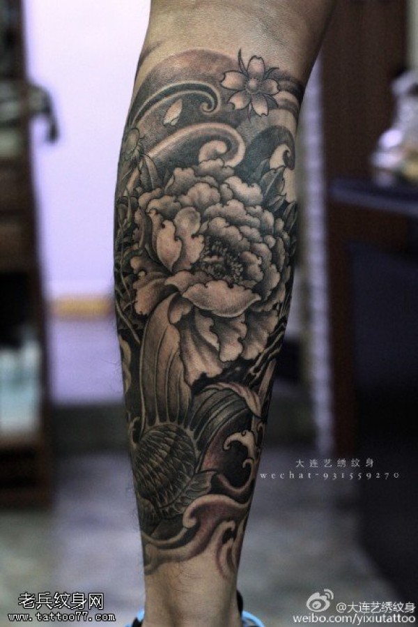 传统鲤鱼花小腿纹身_腿部纹身图案大全_纹身图吧