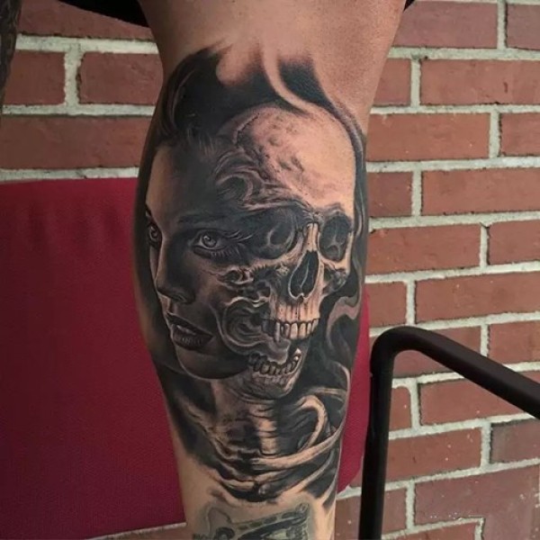 超帅时尚的黑灰骷髅与蛇纹身图案