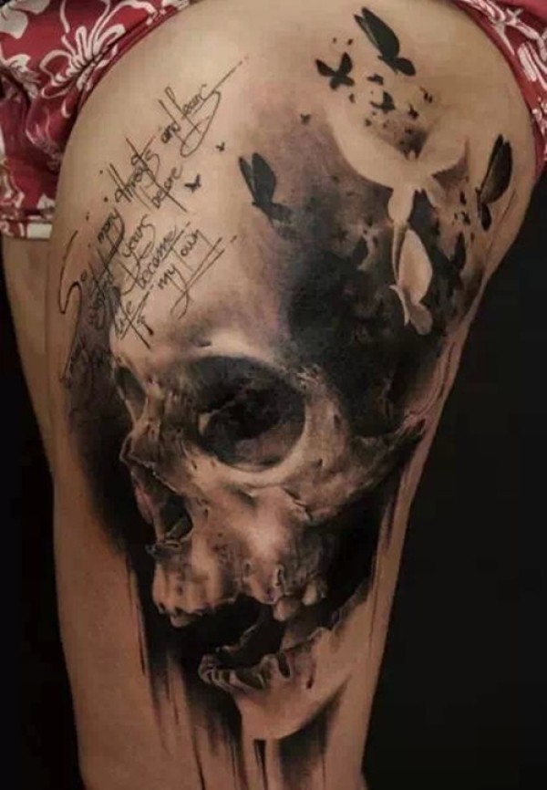 恐怖黑灰骷髅头纹身