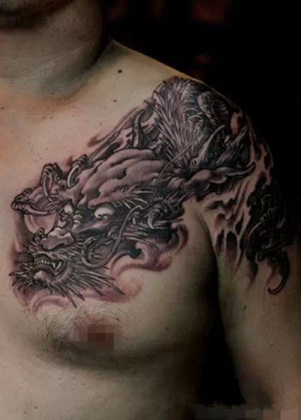 龙纹身手稿_一组老传统黑灰龙手稿纹身图案
