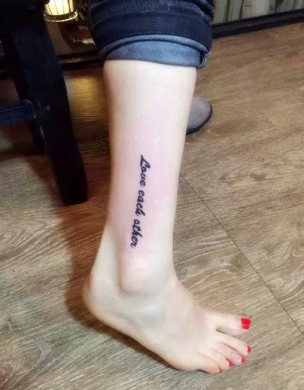 小腿个性英文字母纹身