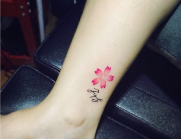 清新小桃花脚踝纹身_脚部纹身图案大全_纹身图吧