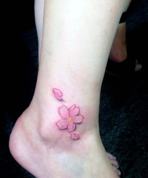 清新小桃花脚踝纹身_脚部纹身图案大全_纹身图吧