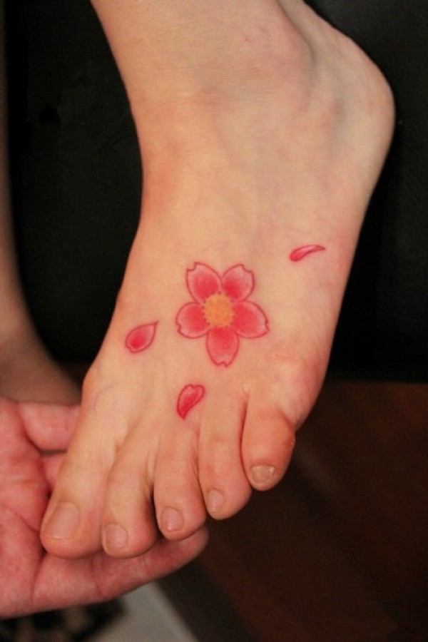 清新小桃花脚踝纹身_脚部纹身图案大全_纹身图吧