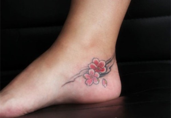 清新小桃花脚踝纹身_脚部纹身图案大全_纹身图吧