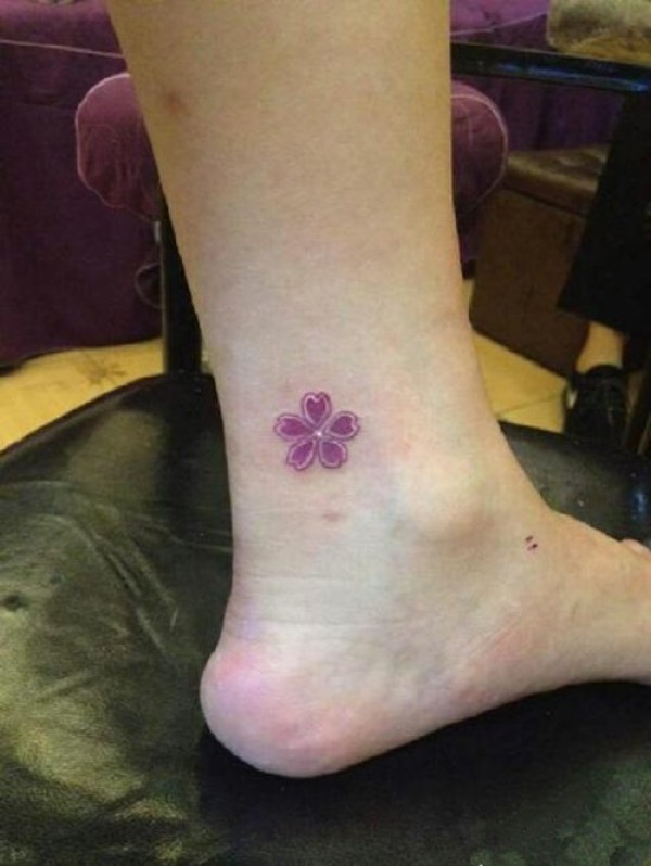 清新小桃花脚踝纹身_脚部纹身图案大全_纹身图吧