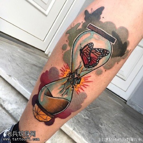 小腿上的沙漏纹身图案