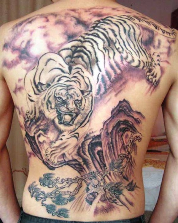 霸气半胛老虎纹身_动物纹身图案大全_纹身图吧