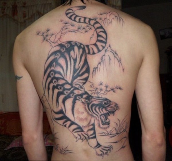 霸气半胛老虎纹身_动物纹身图案大全_纹身图吧