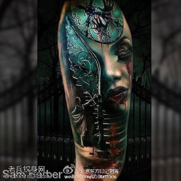 肩部半只面具纹身图案