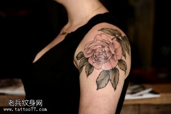 女生肩花纹身_15张女性双肩对称的肩花纹身图案作品图片