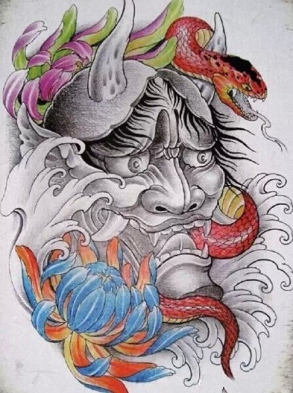 能面万媚纹身手稿_52张日式能剧面具纹身手稿图案素材欣赏