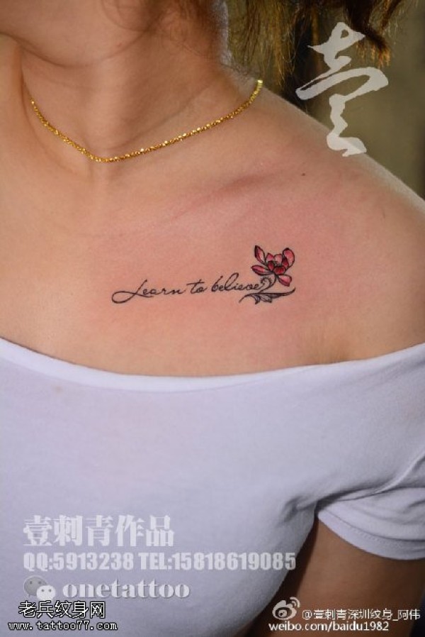 肩部字符小花纹身图案