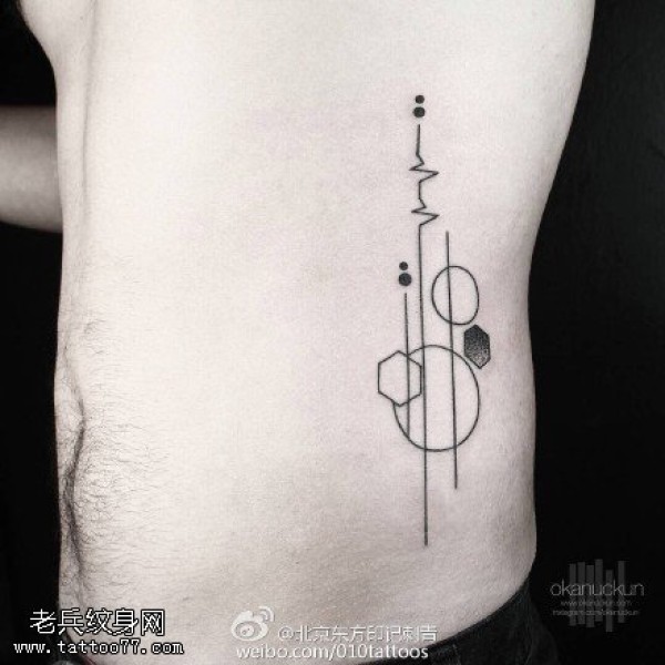 女生后腰纹身黑白灰风格抽象线条纹身图案