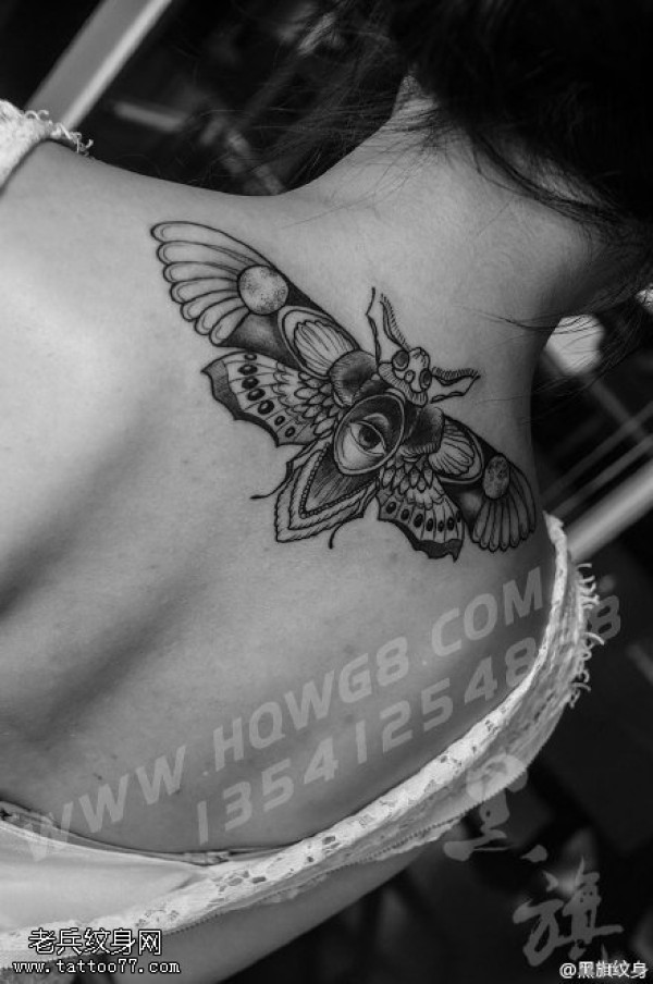 颈部的飞蛾纹身图案