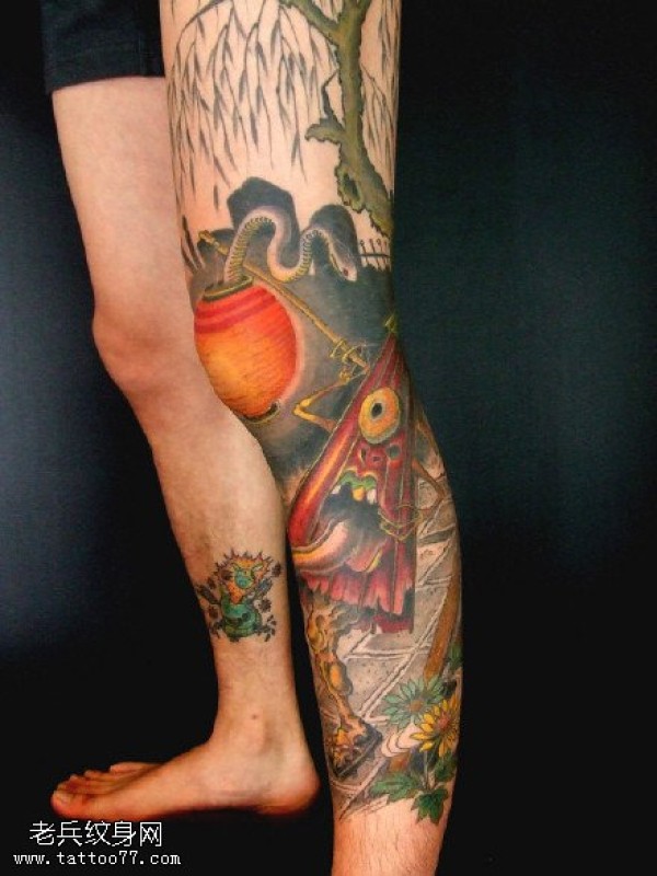 花腿纹身--一组大黑腿纹身图案作品欣赏