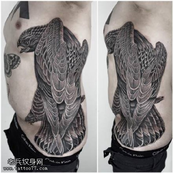 腹部的雄鹰纹身图案