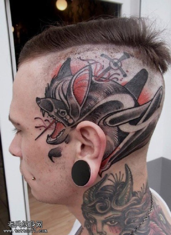 男生头部帅气时尚的狼头纹身图片_头部纹身图案大全_纹身图吧