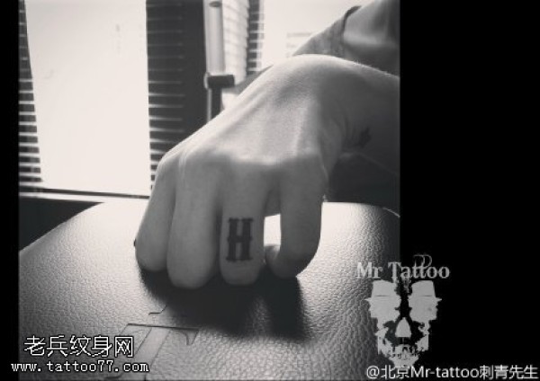 手指上的H字符纹身图案