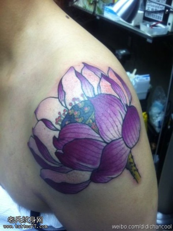 女生肩花纹身_15张女性双肩对称的肩花纹身图案作品图片