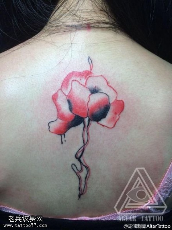 背部的水彩花卉纹身图案