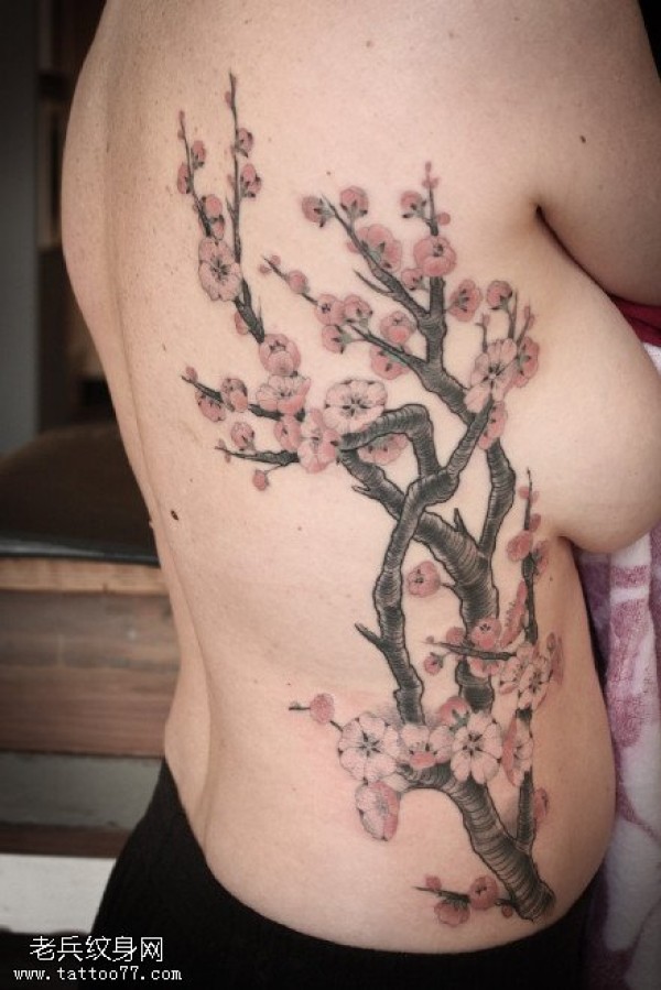 胸侧的梅花纹身图案
