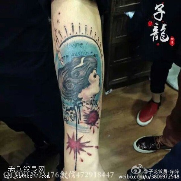 清纯女孩腿上可爱肖像纹身图片_肖像纹身图案大全_纹身图吧