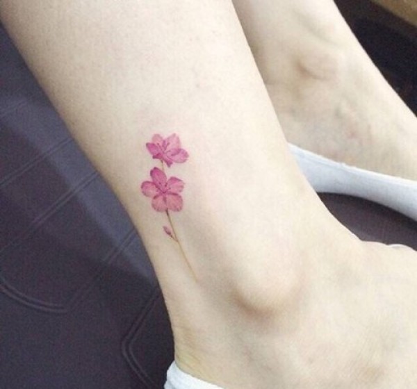 清新小桃花脚踝纹身_脚部纹身图案大全_纹身图吧