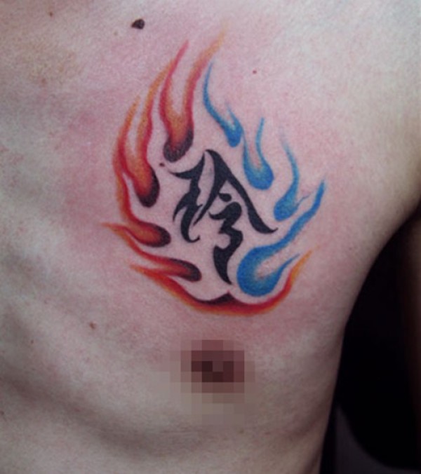 男士前胸火焰纹身