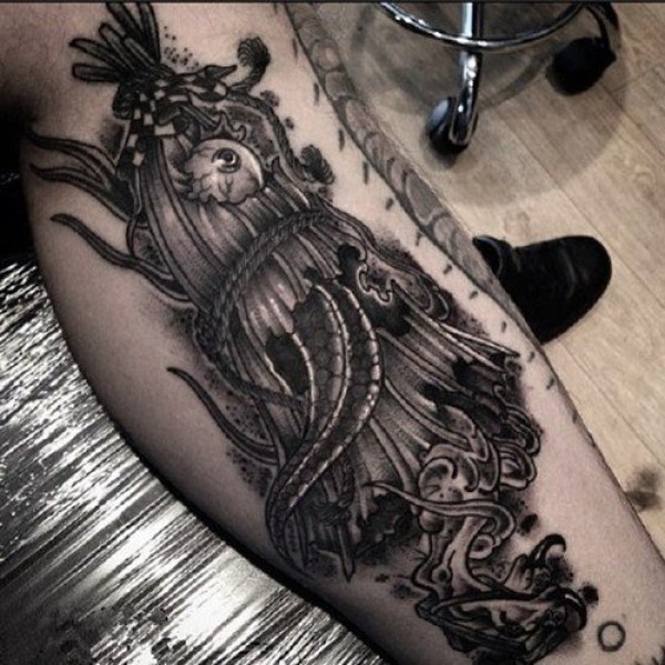花腿纹身--一组大黑腿纹身图案作品欣赏