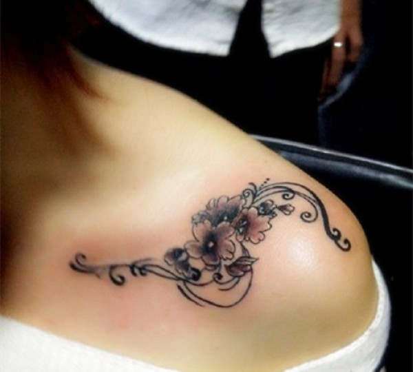 女生肩花纹身_15张女性双肩对称的肩花纹身图案作品图片