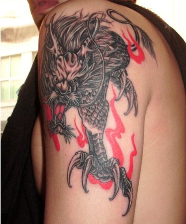 龙纹身手稿_一组老传统黑灰龙手稿纹身图案