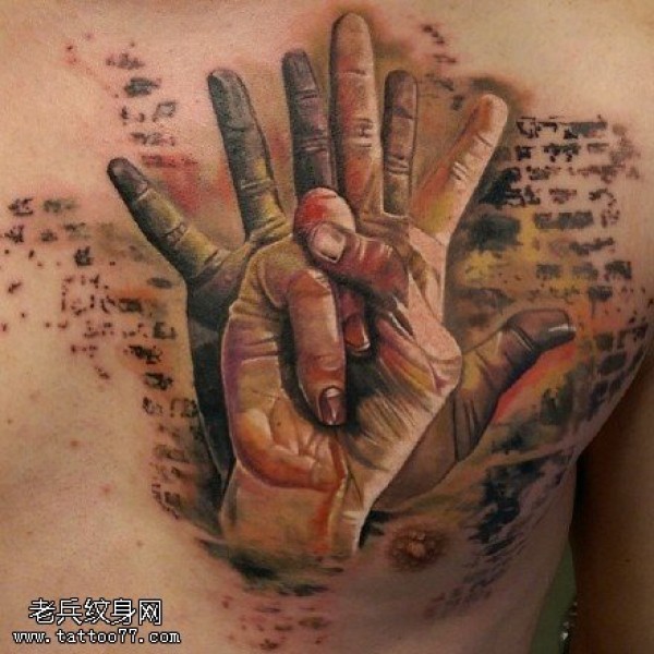 胸前的手势纹身图案