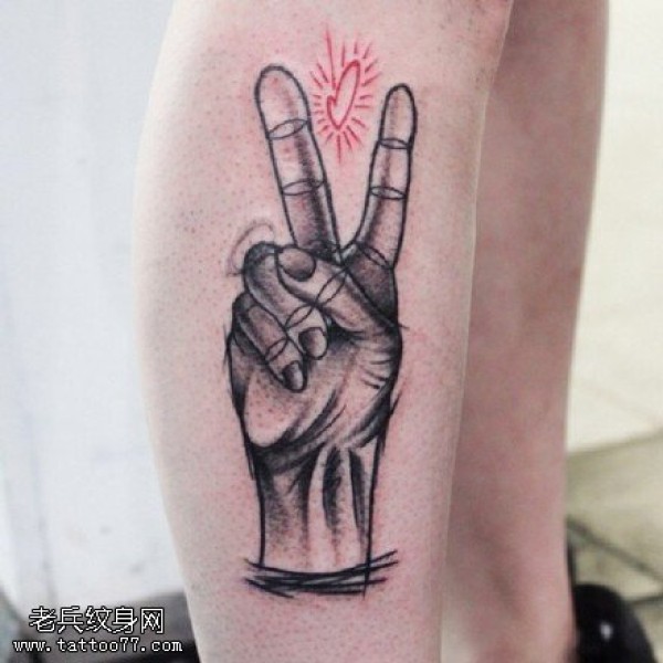 小腿上的手势纹身图案