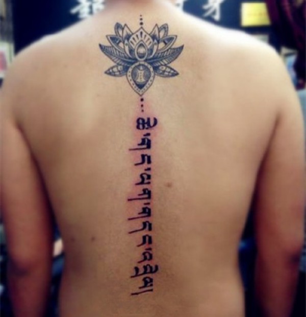 后背个性藏文纹身图片