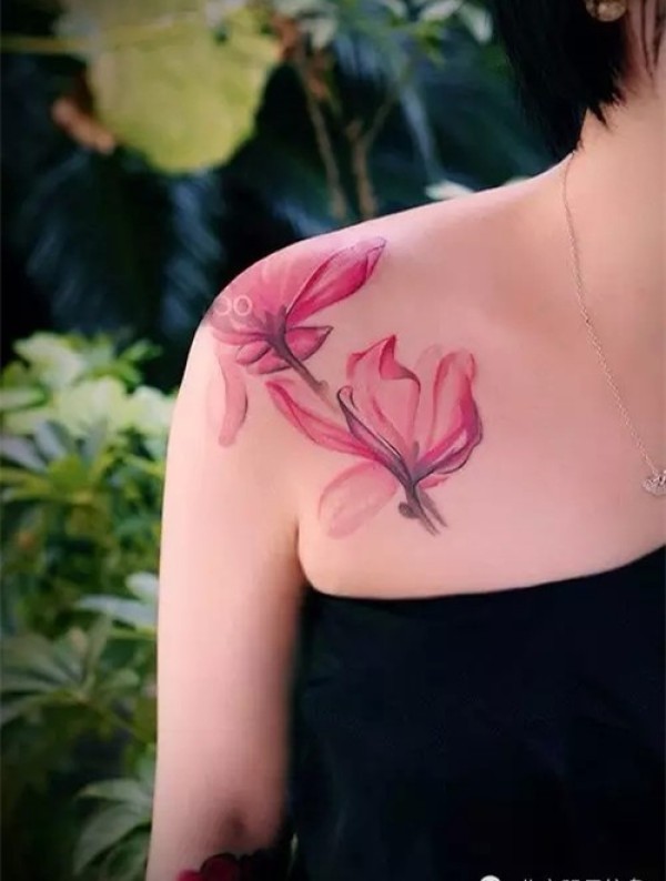 后肩唯美花藤英文图案图片_植物纹身图案大全_纹身图吧