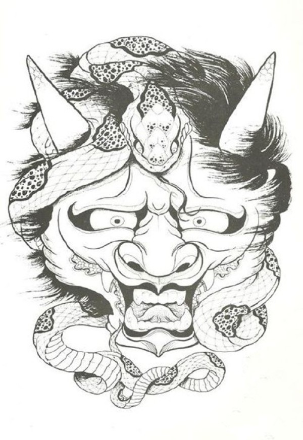 能面万媚纹身手稿_52张日式能剧面具纹身手稿图案素材欣赏