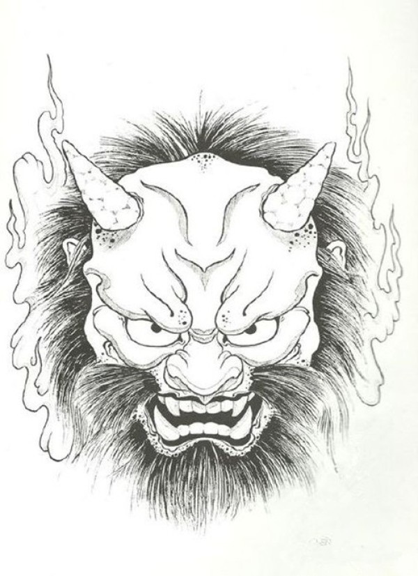 能面万媚纹身手稿_52张日式能剧面具纹身手稿图案素材欣赏
