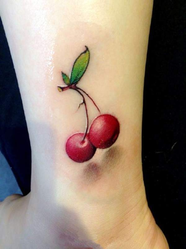 脚踝小巧樱桃纹身图片