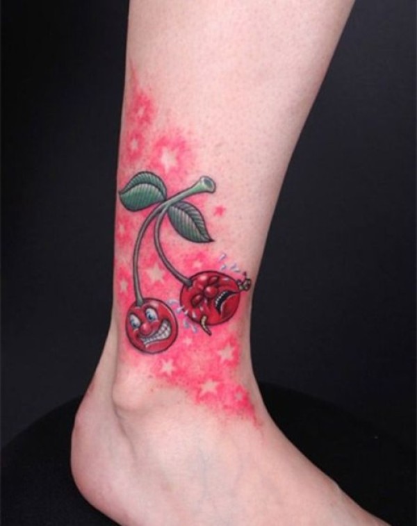 脚踝小巧樱桃纹身图片